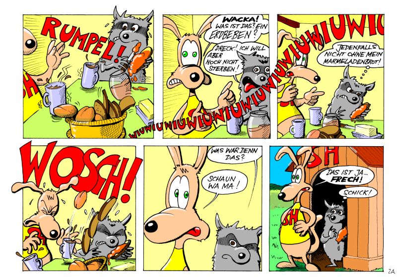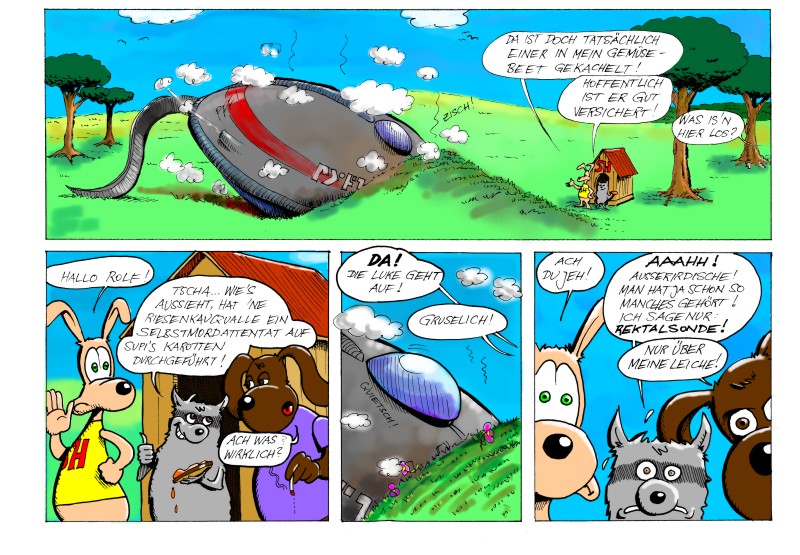 @ Rossiniori: Wacky schmiert sich ein Marmeladebrot, ein Raumschiff landet und ein blauer Typ fummelt an seiner Armbanduhr rum. Ist eigentlich eh viel Action für 3 Seiten... :P