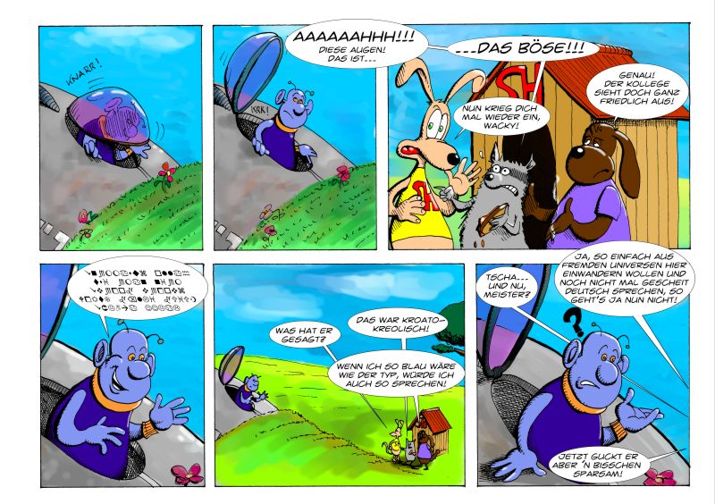 Das Alien muss schon g'scheit Doitsch sprechen, sonst les ich nicht mehr weiter.