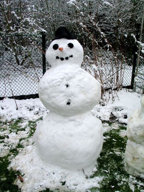 So sah das heute morgen von meinem Fenster aus aus, darunter unser Garten und der Schneemann ist doch auch toll geworden oder? :D