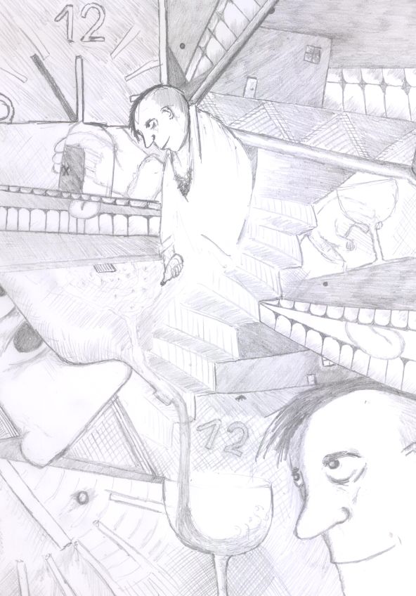 Fehler? dass der Typ auf dem einen Bild nur drei Finger hat, im nächsten aber 4? Oder dass der Zeiger der Uhr im vorletzten Bild auf halb Sechs steht? - Ist mir aber beides nur aufgefallen, weil du was von Fehlern geschrieben hast. Ich finde das Bild/ den Comic an sich sehr stimmig. Und ich weiß gar nicht, ob ich das an deiner Stelle überhaupt colorieren würde. Kannst mich aber gern vom Gegenteil überzeugen :)