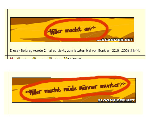 man sollte Sloganizer.net verklagen. Dass ihr mir das ja nicht ernst nehmt, was die schreiben!