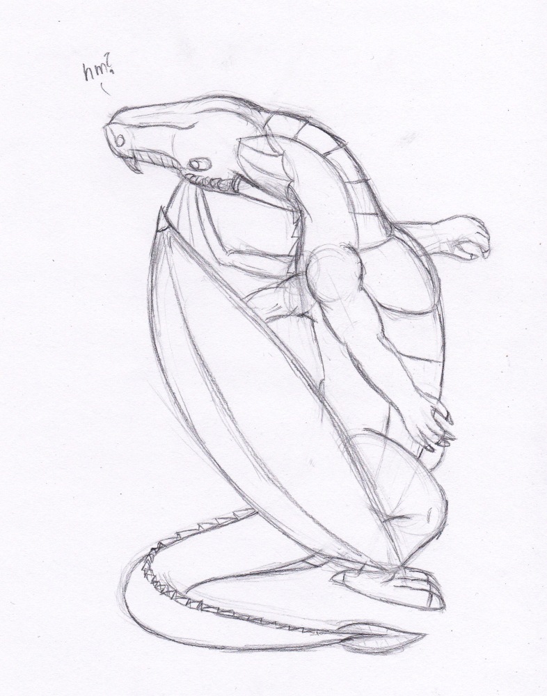 Ich finde, Du entwickelst Dich in letzter Zeit echt weiter. Vor allem Dein Drachen gefällt mir aschon sehr gut, nur mit dem Flügelansatz steuerbords bin ich noch nicht 100% einverstanden. Da werde ich noch nicht schlau draus. Das würde sich wahrscheinlich bei einer reinzeichznung (und mit Farbe) ändern.