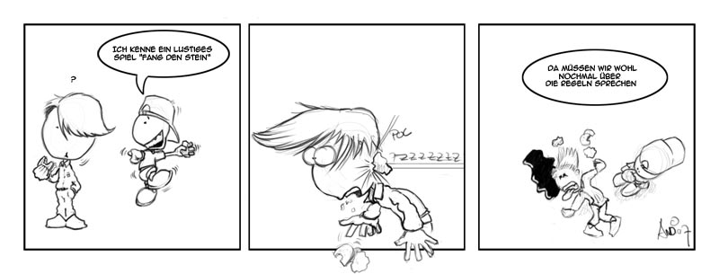 Mal ganz ehrlich da gehört natürlich eigentlich noch ein Hintergrund rein, ein Baum ein Weg usw...mal gucken was ich mit den kleinen Typen noch anfange, "Sterilo" und der der immer schei*e baut sind ja schon der Anfang einer Bande die Abenteuer erleben können...oder ein Strip alla "Pausenhof" oder sowas.