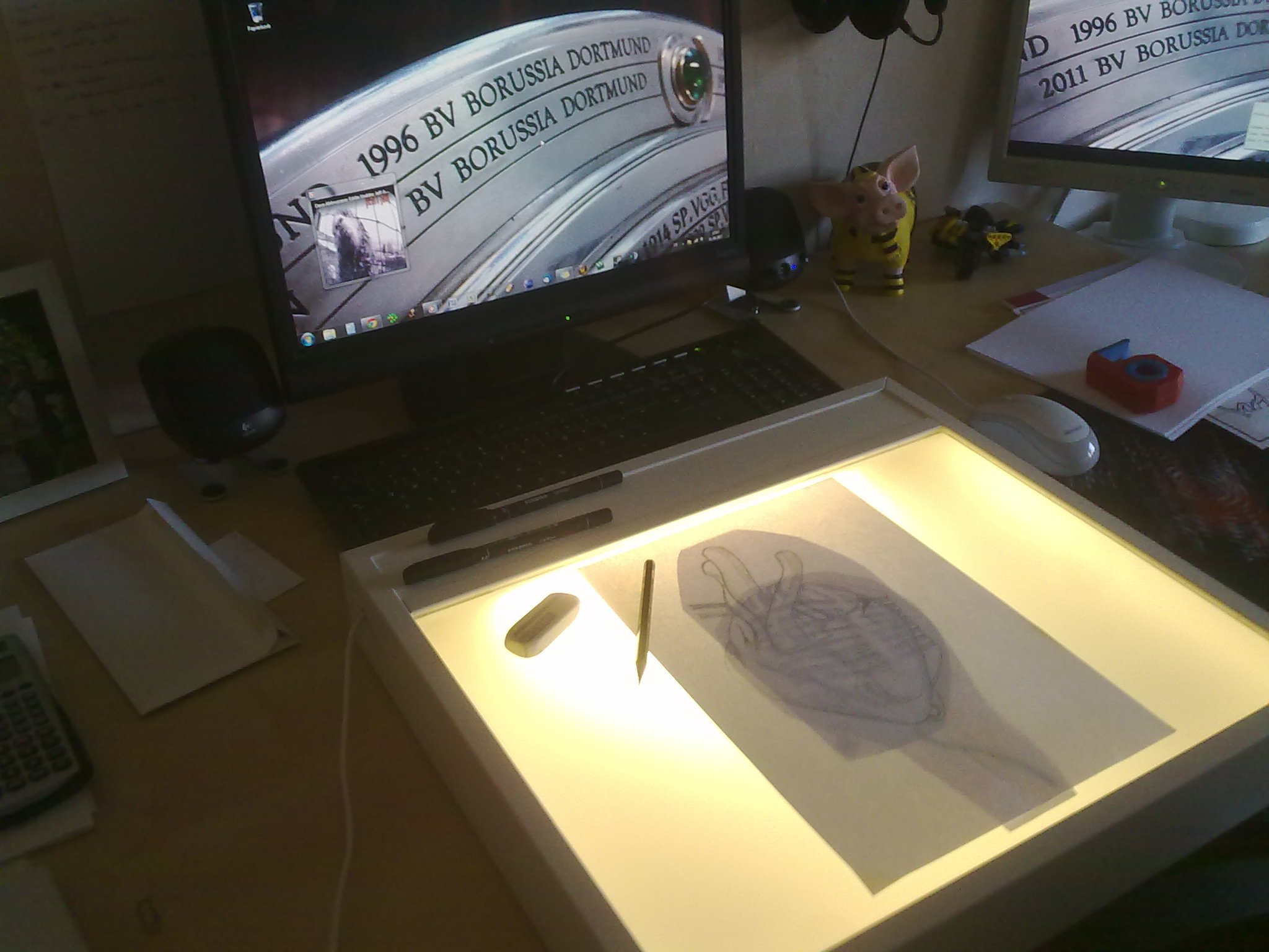 Ich muss den Esstisch frei räumen oder den Skizzenblock auf die Beine legen, um zeichnen zu können...
