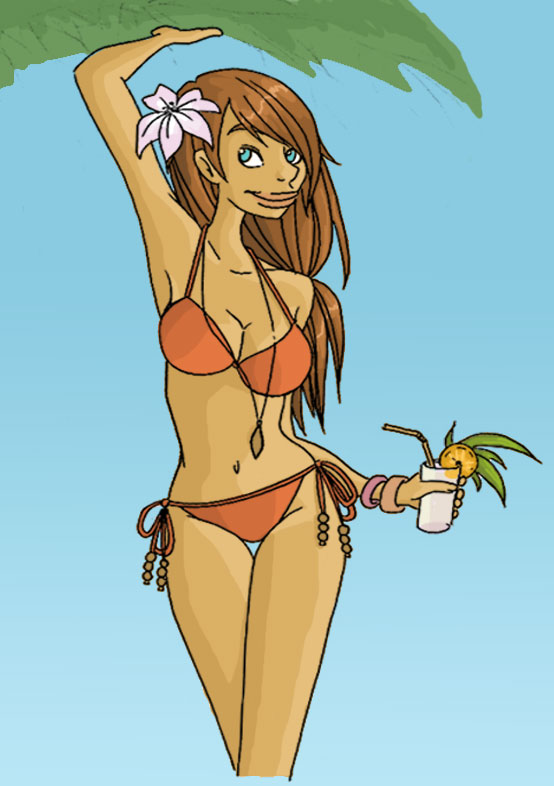 Hach, das ist wirklich ganz wundervoll, Hiller. Ich habs übrigens auch grad coloriert und es ist interessant zu sehn, wie ähnlich sich unsere Vorstellungen waren! Die Armreifen hab ich zB auch in einem helleren und einem dunklen Rosa (bzw Pink, in meinem Fall) gemacht! Und die Farbe des Bikinis geht auch etwa in meine Richtung.