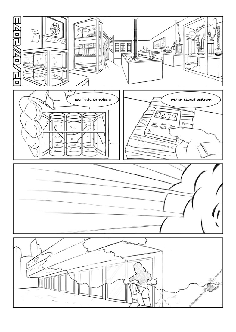 Ja das vorletzte Panel habe ich mal 1:1 gezeichnet, darum ist das viel zu Detailgetreu geworden...das ändere ich noch in PS beim faabig machen.