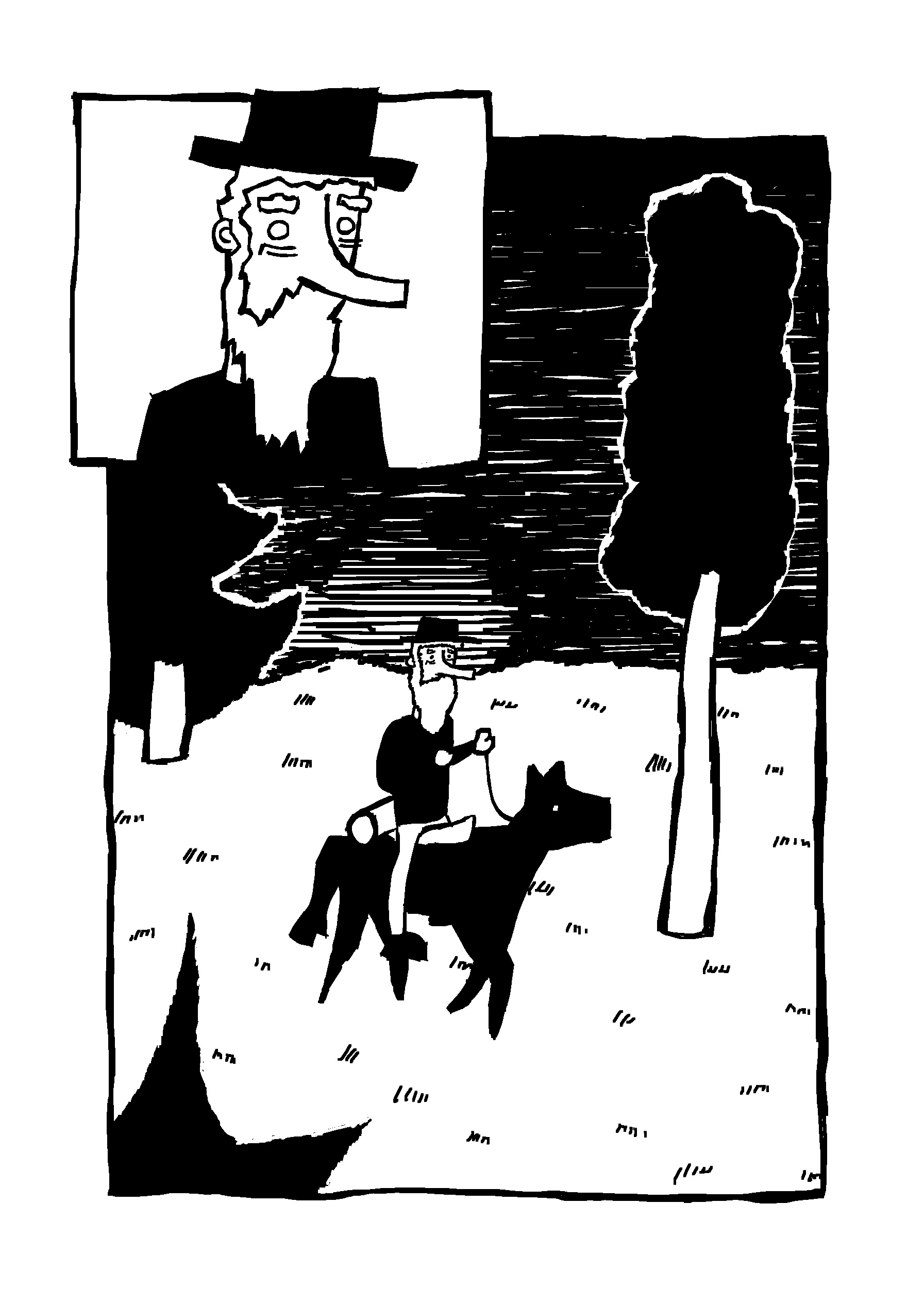 Nein es nicht noch nicht zu Ende. (Im zweiten Teil wird dann mehr geredet). Ich mache jetzt erst einmal den Hack-Comic fertig, dann ueberarbeite ich den ersten Teil des Westerns und versuche ihn auszudrucken und in Mini zines zu falten und so und DANN mache ich mich an den zweiten Teil. Duerfte also noch etwas dauern.