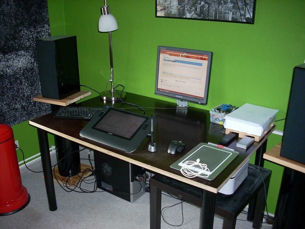 Und im Moment sieht es wirklich so ordentlich aus, da ich ja das Cintiq neu hab und deswegen hab ich mich halt mal rangesetz und aufgeräumt. Einiges mehr ist zwar schon noch aufm Tisch, aber alles säuberlich angereiht. Ich muss sagen, so arbeitet es sich auch viel komfortabler. Ich werde versuchen, dass es auch so bleibt, aber das wird schwierig :D