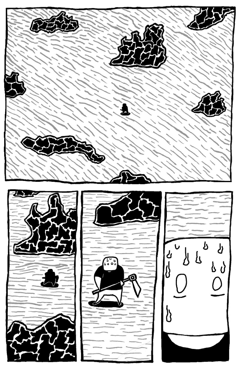 Ein sehr interessanter Ansatz, der mir gut gefällt (wobei die Handlung in der richtigen Reihenfolge auch nicht wirklich "Sinn" ergibtDie Idee dahinter war zu zeigen, dass die Comicfigur (er fernsehende) im Comic gefangen ist, während der leser fast mühelos die echt Bedeutung der Bilderfolge erfassen kann.