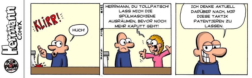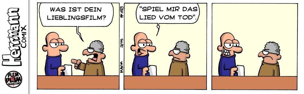 Stimmt, ich probiere, Herrmann nicht allzu zynisch zu halten. Klar, manchmal ist ein Strip auch makaber und schwarzhumorig, aber das ist eher die Ausnahme. :D
