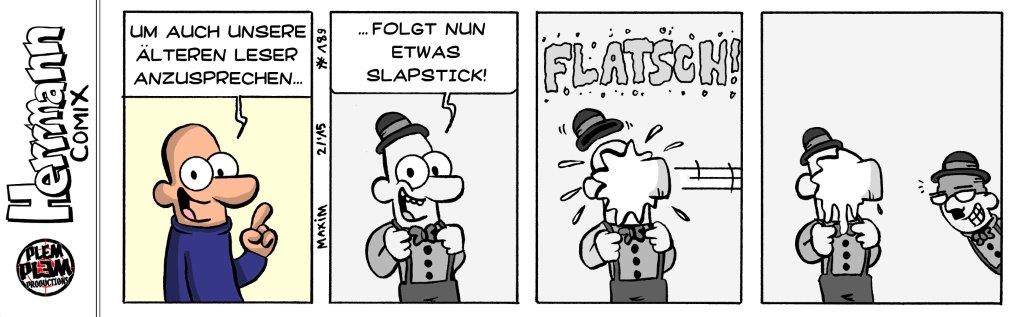 Stimmt, ich probiere, Herrmann nicht allzu zynisch zu halten. Klar, manchmal ist ein Strip auch makaber und schwarzhumorig, aber das ist eher die Ausnahme.