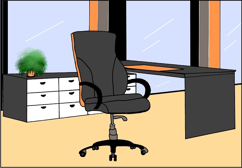 In diese Zeichnung werden noch ein abgehender Angestellter mit Aktentasche auf der rechten Seite des Bildes und links auf der Glaswand werde ich noch eine Leistungskurvezeichnung platzieren, die zuletzt im Keller ist. :D