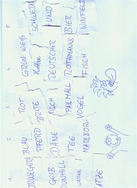 - Der Marlboro-Raucher wohnt neben dem, der eine Katze hält.