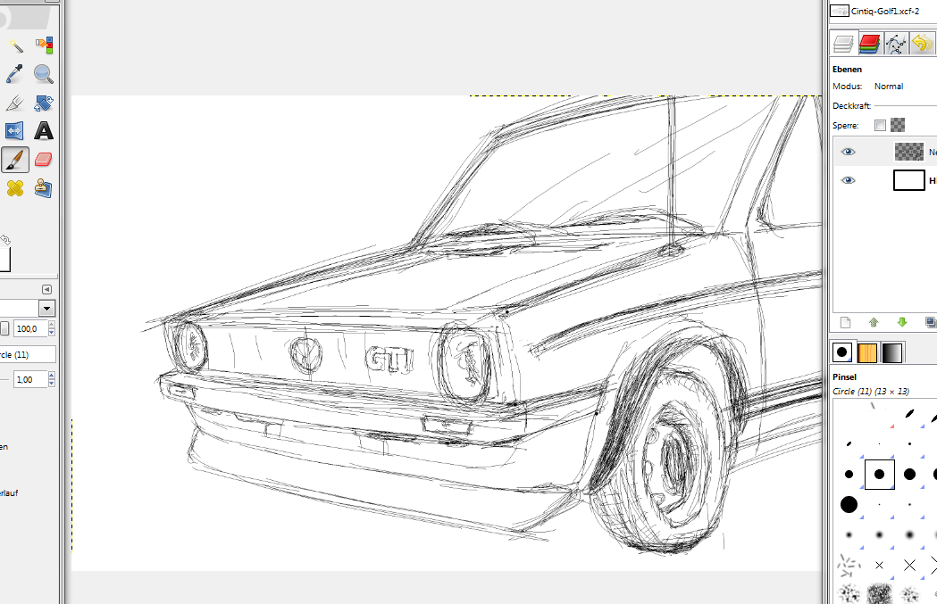 Das nächste Werk ist eine art Mammut projekt, ich will einen Golf 1 GTI zeichnen und habb auch schon die erste skizze fertig.