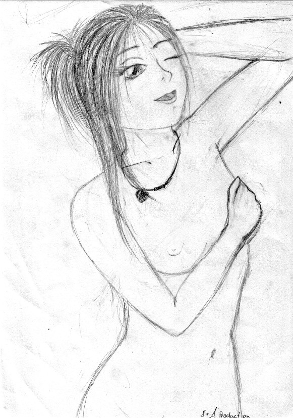 der linke Fuß von uns aus, ist ziemlich verunstaltet (kann keine Füße von forne malen) und der komische schwarze Punkt auf ihrer hand sollte mal ein Ring werden. Aber genug sucht euch selbst eure fehler, viel spaß.