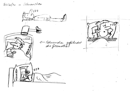 Ja genau: Eine Frau, verstruweltes Haar, leicht blutunterlaufene Augen wegen des Schlafmangles, ein verbissen-entschlossenes Lächeln auf den Lippen, den Hammer mit beiden Händen fest umschlossen, gerade ausholend ... Den eigentlichen Schlag denkt sich der Leser dann schon dazu