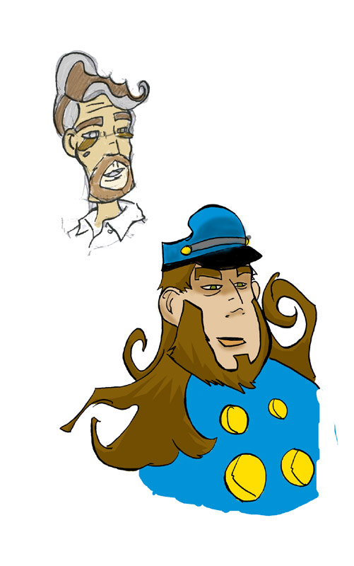 Hatte ein paar Skizzen zu diesem Projekt gemacht, die noch mehr in den "Monkey Island" Stil reingingen. Waren mir dann aber doch zu funny mäßig.