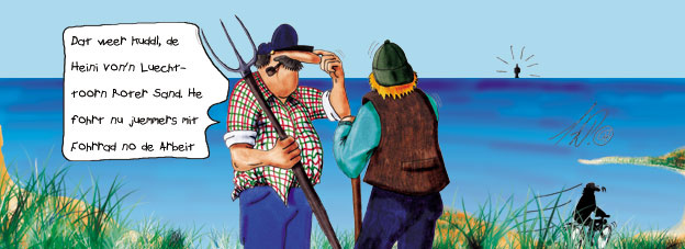 @Solo: Da fährt Kuddel, der Typ vom Leuchtturm 'Roter Sand'. Der fährt nun immer mit dem Fahrrad zur Arbeit.