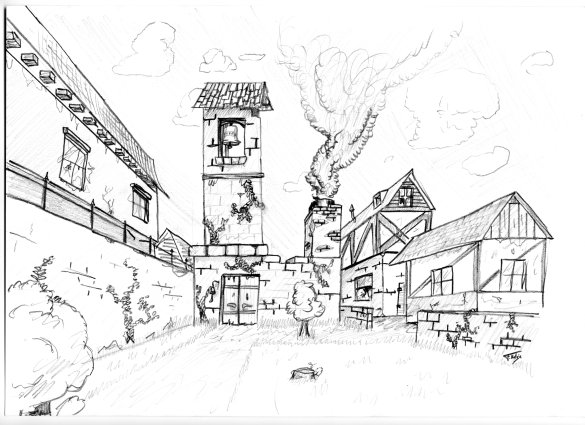 @Djacco (genau, Bleistift) MIt dem Turm in der MItte....bin ich genau deiner Meinung, aber hab es nicht anders hingekriegt....Die beiden Häuser rechts und der Turm sind frei Hand gezeichnet, das Haus links mit Hilfslinien...auch wenn das komischerweise am wenigsten gut aussieht..naja :D