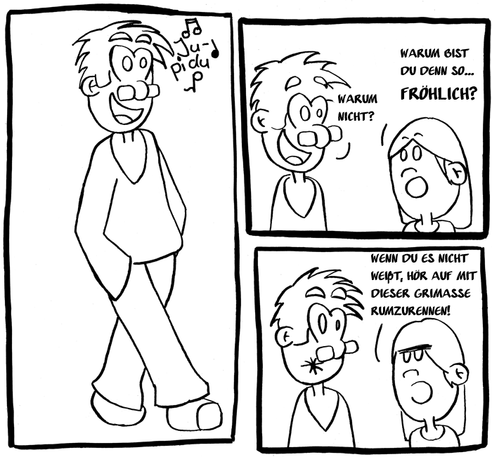 Äch hab heut mal wieder gezeichnet, und es ist eine weitere Folge von meiner autobiographischen Serie "Frogger" (hach mist, immer muss ich sie umbenennen) herausgekommen. Viel Spaß!