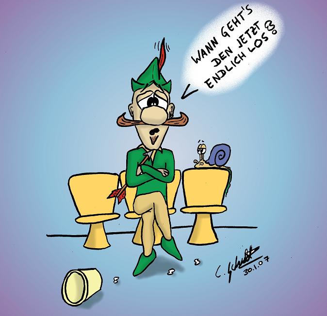 So, die nächste zeit wirds hoffentlich mal wieder etwas mehr von mir zu sehen geben, da ich am Montag erstmal ins Krankenhaus komme wo mir die mandeln entfernt werden, auf grund dessen hab ich dan gaaaaaaaaaanz viel zeit, die ich vorwiegend meinem immernoch nicht vollendetem comic widmen werde, aber auch so die ein oder andere karikatur sind geplant, mir wurde ja empfohlen robin hood mal mit einzubinden und ja, ich hab den passenden gag gefunden, aber das werdet ihr schon noch sehen.