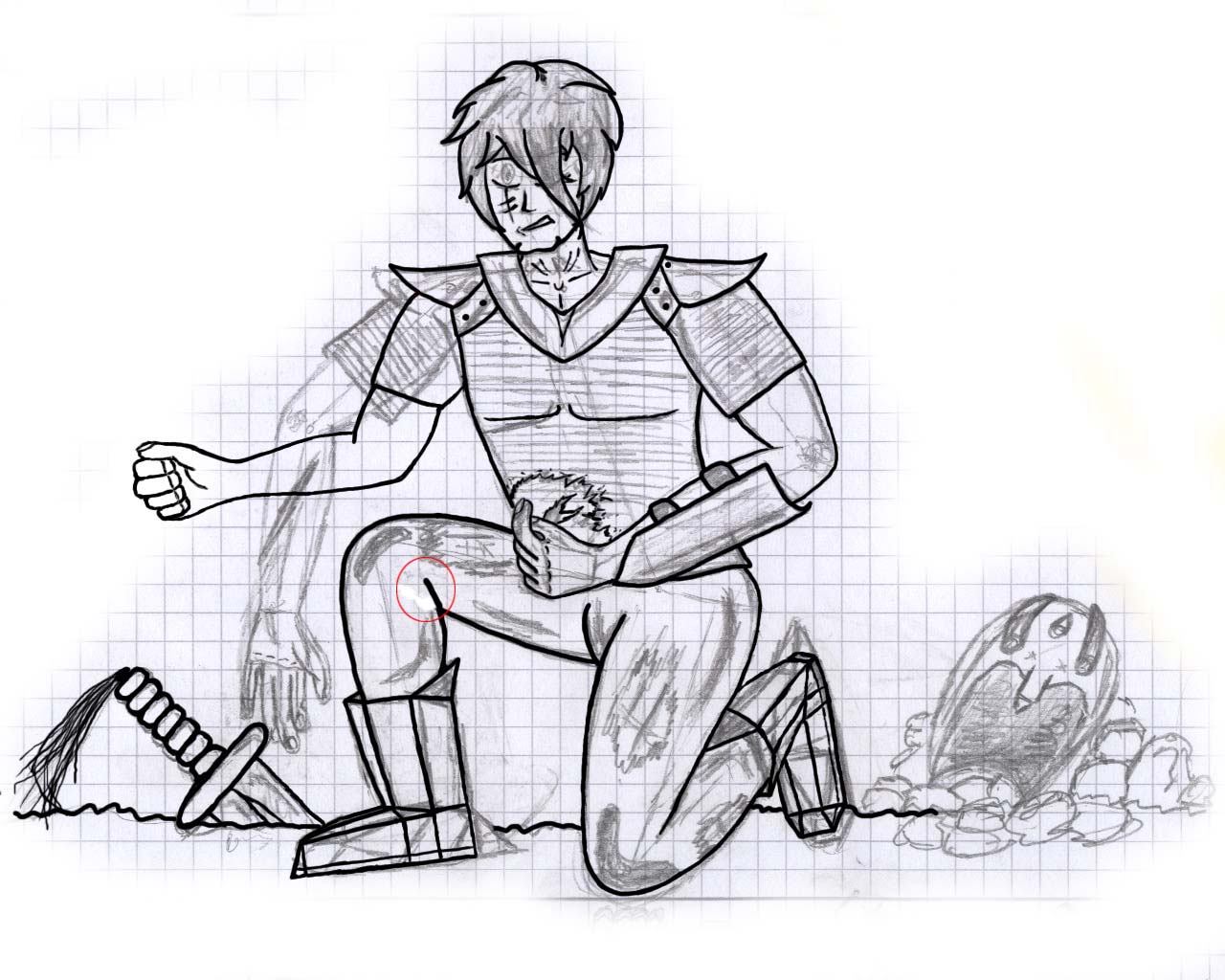 Ich würde an deiner stelle auf weißes Papier zeichnen, und den Bleistift wegradieren, und noch ein bisschen mit Schwarz die schatten und die Rüstungsstruktur einzeichnen usw... oder gleich colorieren ^^