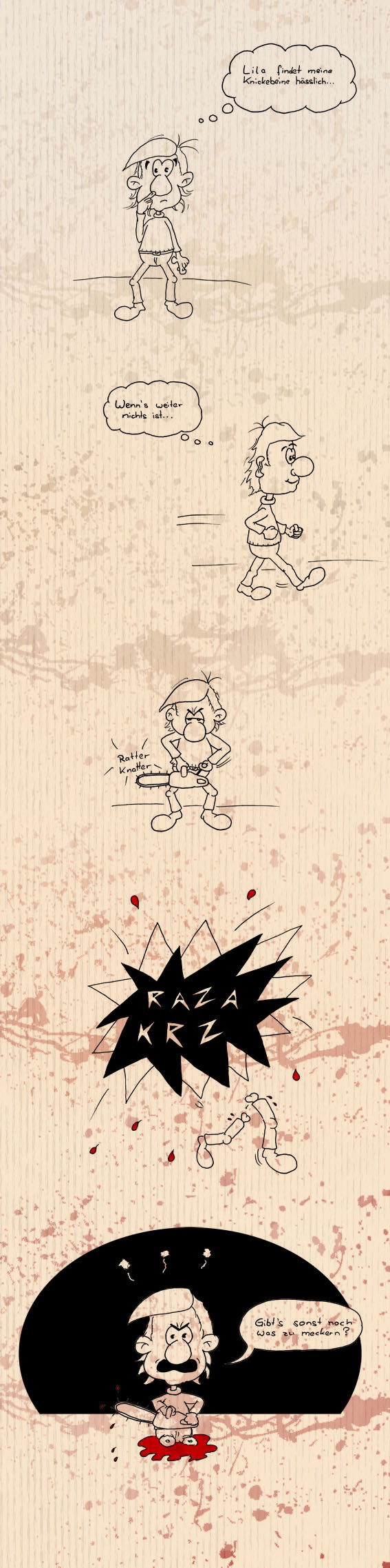 Freut mich. Aber das mit den Prothesen könnte schwierig werden. Ich würd ihm lieber nochmal was abschneiden. Jetzt wo ich grad so schön auf der Splatter Schiene bin. Falls also jemandem etwas nicht gefällt immer her damit, das kommt dann weg.