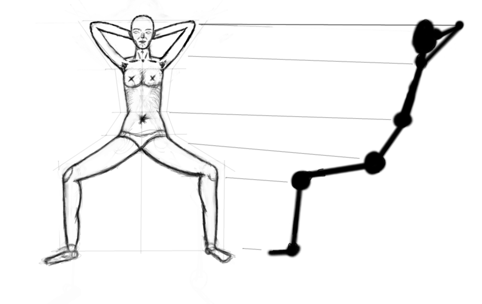 zu der skizze: die props find ich in ordnung, außer dem (von uns aus) linken arm. is der so kurz, weil der auf uns zukommt? dann müsste theoretisch die hand den arm etwas verdecken.