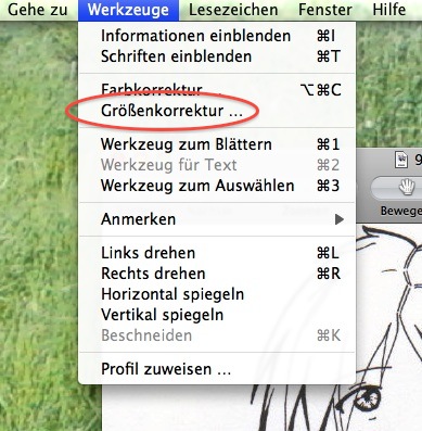 3. von da aus geht ihr dann weiter runter auf Größenkorrektur.