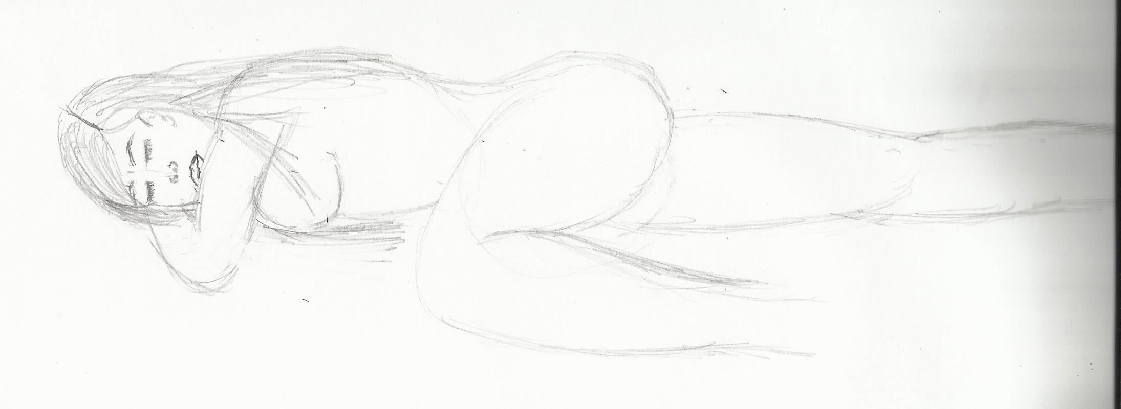 Du solltest vielleicht versuchen auch den Unterleib zu zeichnen und so wie in img(2) die Hände über dem Körper zu zeichen, dass wirkt irgendwie plastischer...