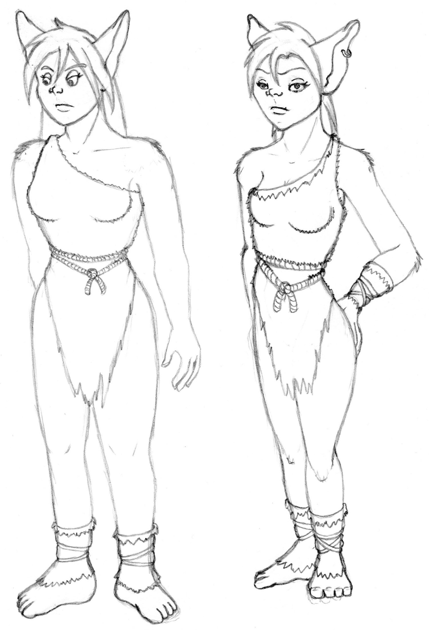Rechts der zweite Versuch. Bei diesem hab ich mehr von meinem Stil einfließen lassen, wobei ich aber immer noch auf die Besonderheiten der Ungeheuer geachtet habe (große Ohren, abgeflachte Nase, kräftiger Körperbau, barfuss). Naja, Frauen dürfen etwas zierlicher rüberkommen, aber ich hab dennoch versucht, den Körperbau etwas kräftiger darzustellen.
