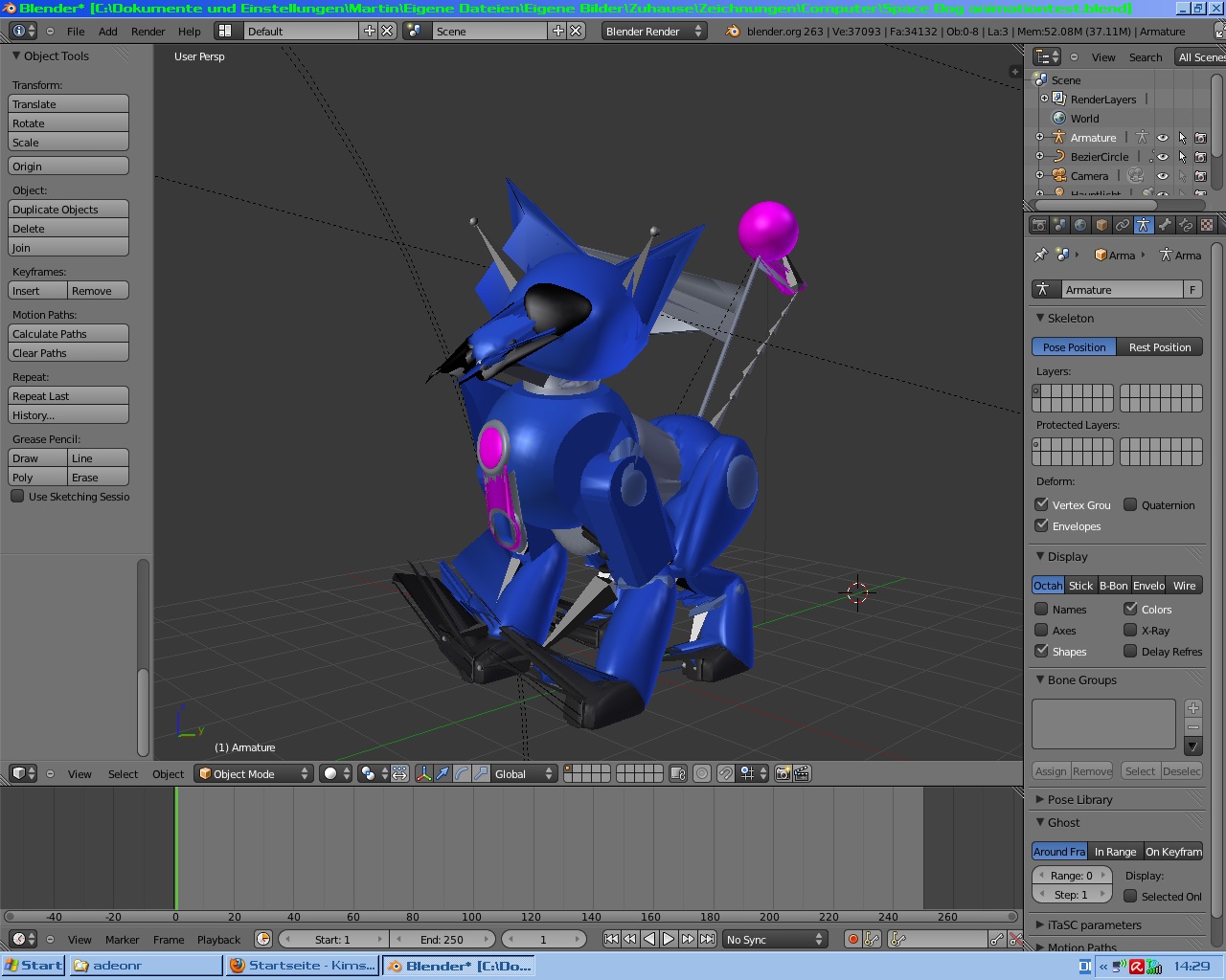 Ich würde ihn auch noch gerne animieren, aber mit Bones also Knochen in Blender hab ich noch keine Erfahrungen. Kennt sich da einer aus?