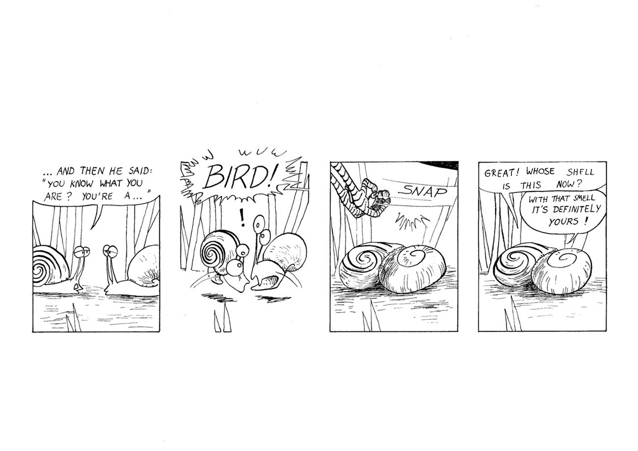 Die Schraffur bei der Schnecke im 2. Panel finde ich super!