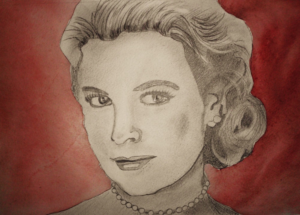 Bleistiftzeichnung mit Aquarellfarbe, 30x40cm, GRACE KELLY