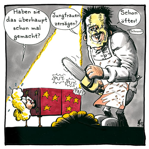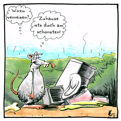 Danke sehr, aber ich hab ja sogar 3 Beiträge abgeliefert, obwohl ich von Anfang an gemutmaßt habe, dass irgendein bekannter deutscher Zeichner gewinnen würde. Aber auch 3 verschiedene Ansätze zum Thema haben nicht für eine Sonderpreisnennung sorgen können. Sieht aus, als müssten wir erst berühmt werden und für einige bekannte Zeitungen/Magazine arbeiten, bevor wir bei dem Wettbewerb auch nur die geringste Chance eingeräumt bekommen...Ich gebs zu, ich hab auch mitgemacht und nicht gewonnen. Dem Yabba seinen ("Nicht meinen Wein ") find ich viel lustiger, aber der hat auch nix gewonnen...