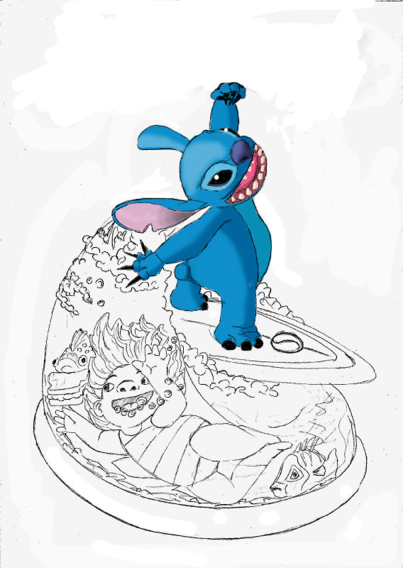 Bei manchen Stellen musste ich die Lücken schließen sonst wäre die Farbe sonst wo hin geflossen. Ist mit GIMP coloriert.