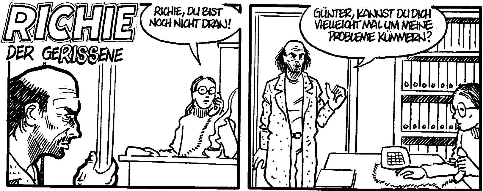 Die Szene ist für mich verständlich und sehr gut umgesetzt.Vorerst mußte ich eine neue Folge von "Richie" zeichnen. Bin gespannt, ob die kleine Szene verständlich ist. Sie spielt im Sozialarbeiter-Milieu.