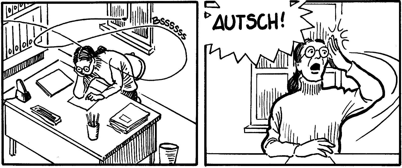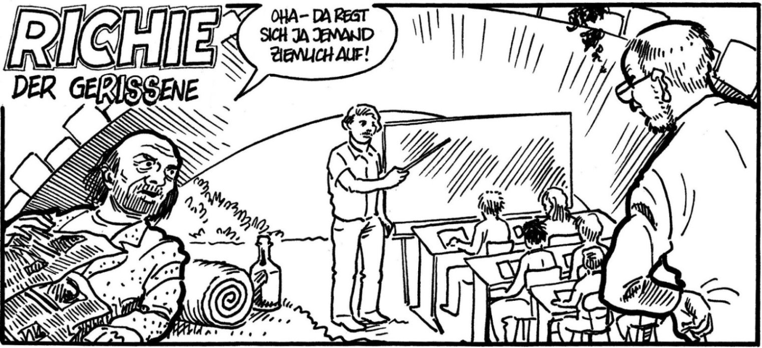 Das Zusammenfügen der Strips zu einer Seite hat noch nicht geklappt, aber ich poste sie jetzt halt einzeln. Für die Zeitschrift nimmt mir ein Layouter diese Arbeit ab.