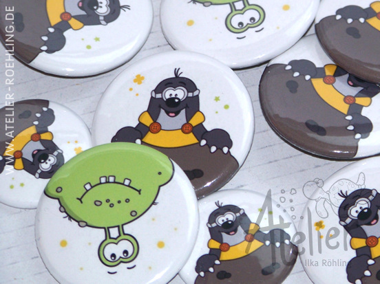 Heute angekommen, meine Maulwurf- und Monsterbuttons. :) Waren nur leider etwas schwierig zu fotografieren, weil die so sehr spiegeln.