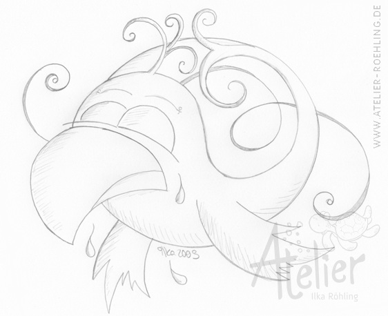 Wahrscheinlich schaut es gelangweilt, weil ich beim Zeichnen mit den Gedanken gaaaanz weit weg war und es nicht meine ganze Aufmerksamkeit hatte. ;) :D