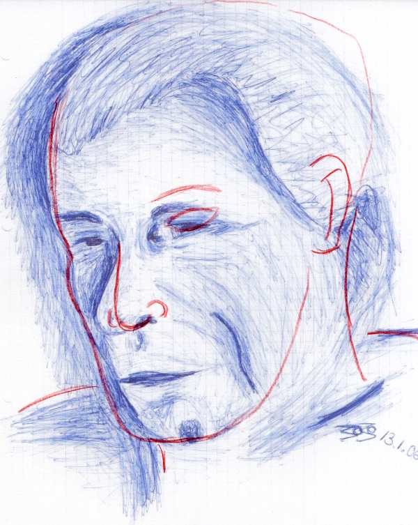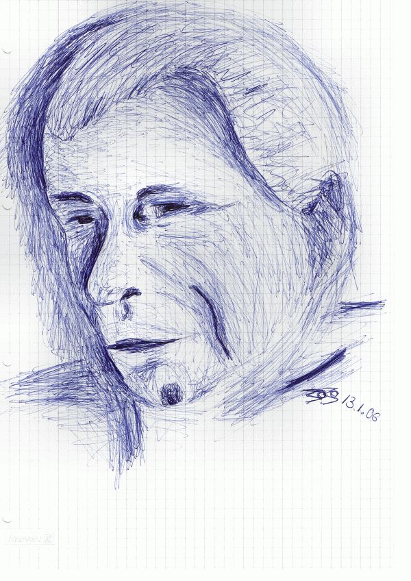 nach einer halben ewigkeit, in der zeichnerisch einfach nichts geklappt hat, melde ich mich hier zurück mit dem 2. portät meines lebens und gleichzeitig meinem ersten versuch was mit kulli zu machen (im museum hatte ich nix anderes dabei...).
