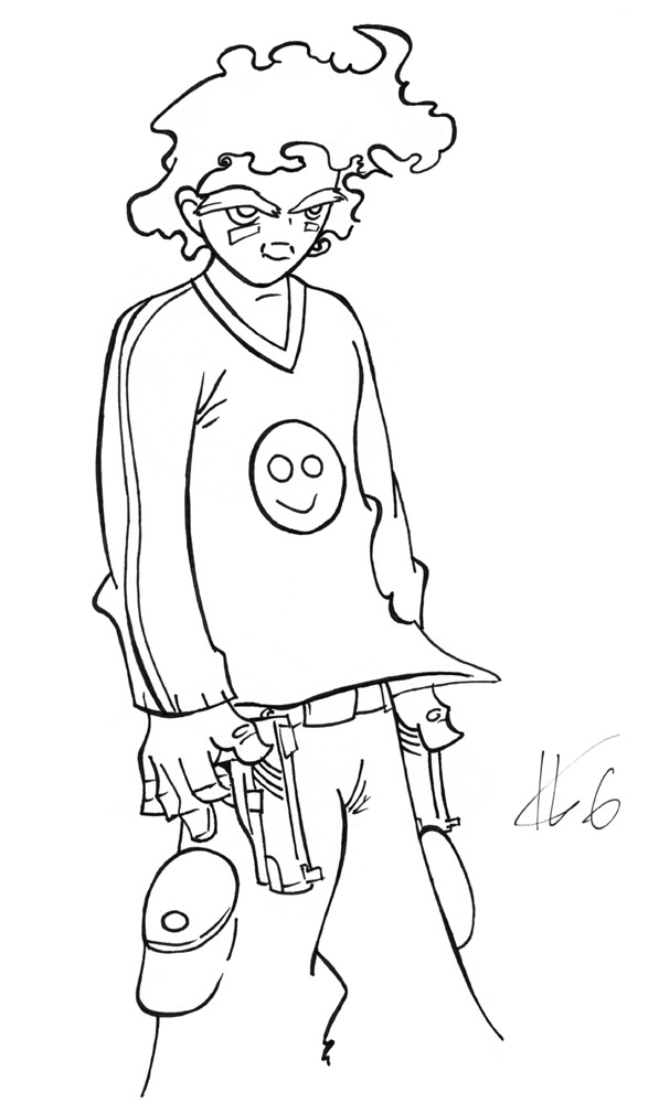 Bei der Waffe hast du recht, da habe ich mich nicht dran getraut, ich hatte erstmal nur alle Sachen in der Grundfarbe koloriert und dann die Sachen mit Schatten etc. versehen, nur bei der Pistole...