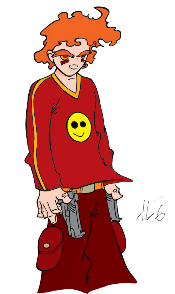 achja, was ich noch dazu gefügt habe. sommersprossen (auch schlecht zu sehen) und den rauch aus der waffe.