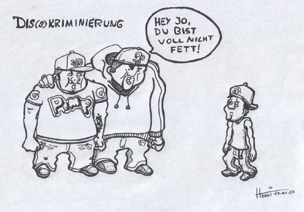 die zeichnung mit den hiphoppern is genau das wonach ich in meinem thread gefragt hatte. cool, danke. und der ohrwurm is sowieso genial. ich mag deinen stil, ich mag deine gags, was soll ich mehr sagen?