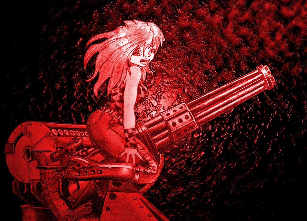 Anbei Minako auf einer stationären 20-mm-Gatling und ein Beispiel für Dauerfeuer.