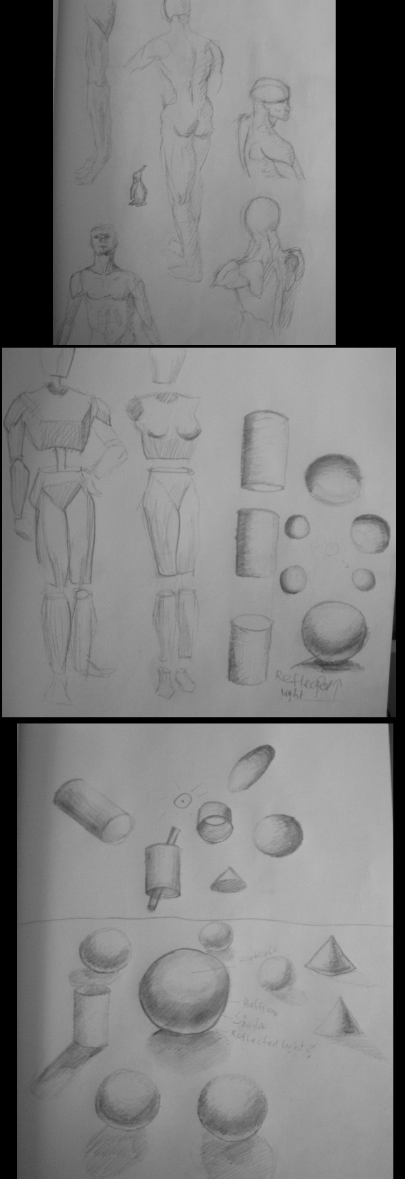 Das erste find ich richtig gut, muss ich mal so sagen :) Das zweite ist iwie nicht so mein Geschmack,..der körper sieht ein wenig merkwürdig aus^^ Und Skizzen find ich eigentlich immer gut, die hier dementsprechend auch, besonders den Typ ganz unten.. (reflected light..was für fachbegriffe :D)
