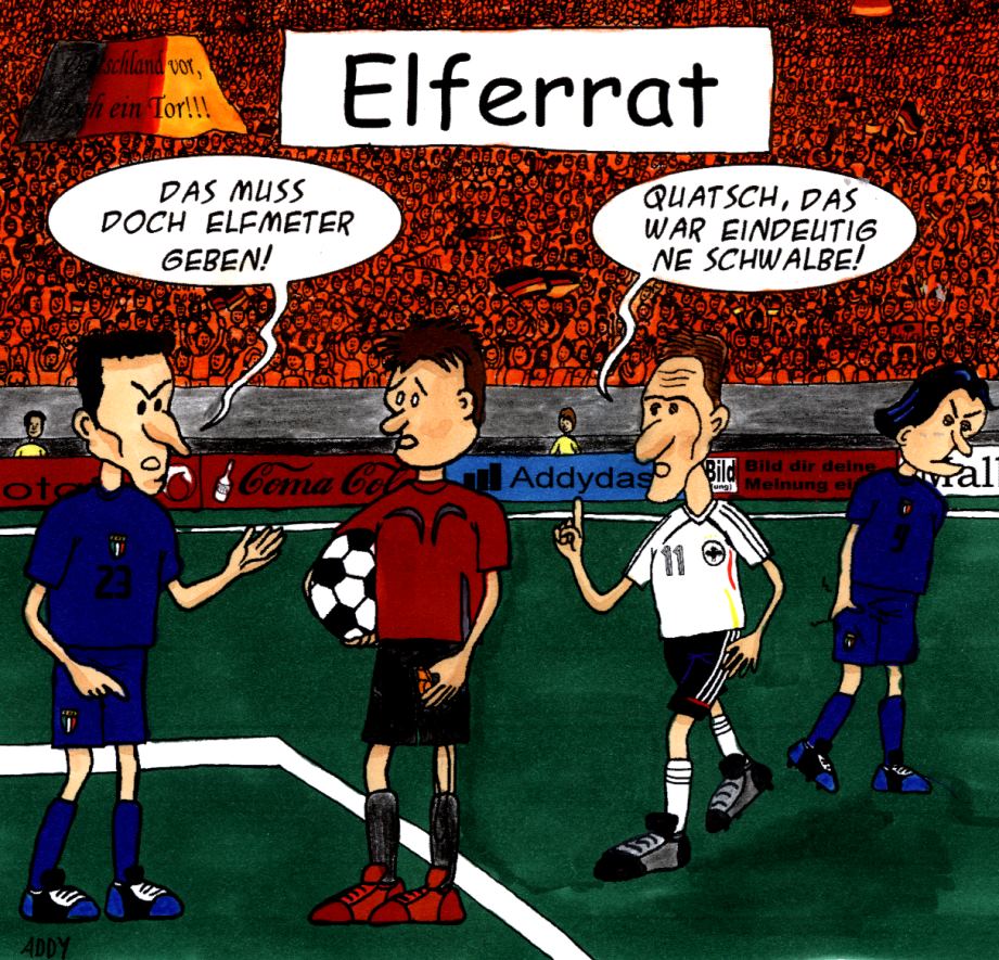 so ich hab den schon beim artbattle #3 und bei meinem cartoonkalender gezeigten elferrat mal von hand koloriert! das will ich übrigens mit allen meinen machen und damit dann mein zimmer dekorieren (wir haben halt keinen farbdrucker)!