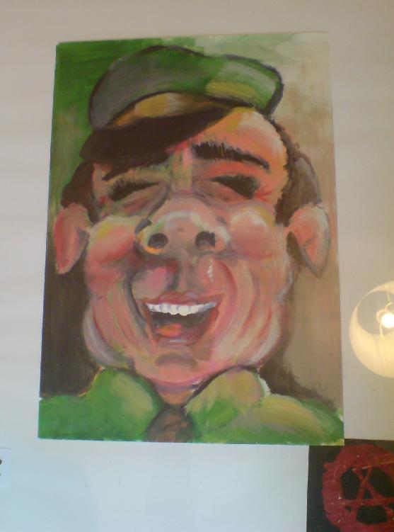 Ich finde die Mischung aus KArikatur, Portraitmalerei, Männchen-Weibchen, den Mund und die Wimpern finde ich ziemlich "feminin", Mischung aus Mensch und Tier interessant. Ein sympatsiches Mischwesen. Das wäre sicher eine coole Comicfigur, die manchmal Frauenkleider trägt oder in der U-Bahn strickt, sich die Nägel lakiert usw. :thumbsup: