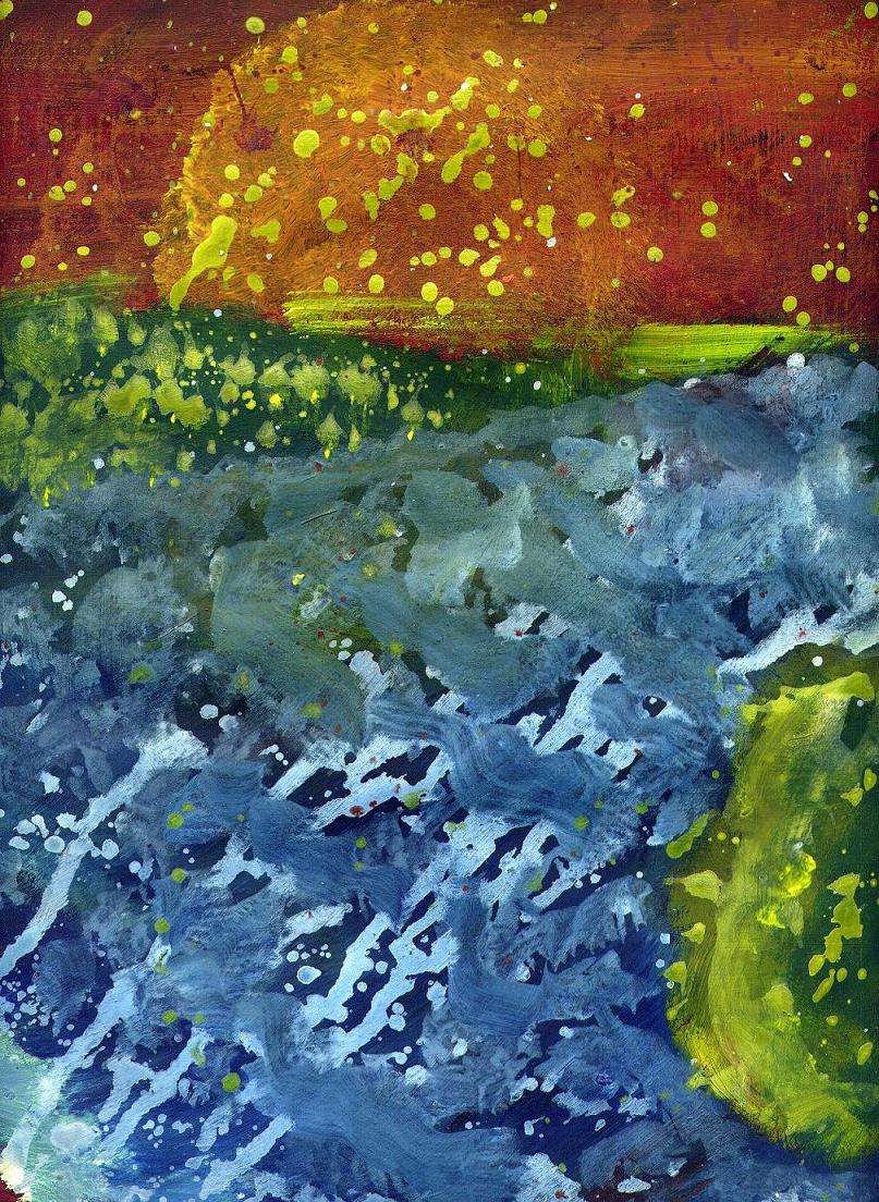 Einzig der grüne Ton in der Mitte gefällt mir nicht, wäre die Stelle mehr aufgehellt, mehr blau, käm der Fluss (in metaphorischer und litarischer Bedeutung) mehr zur Geltung.