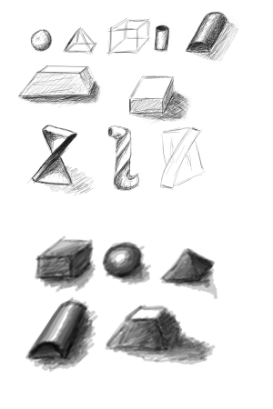 Heute Vormittag habe noch ein wenig rumgekritzelt, und versucht einfachste Formen in 3D abzubilden